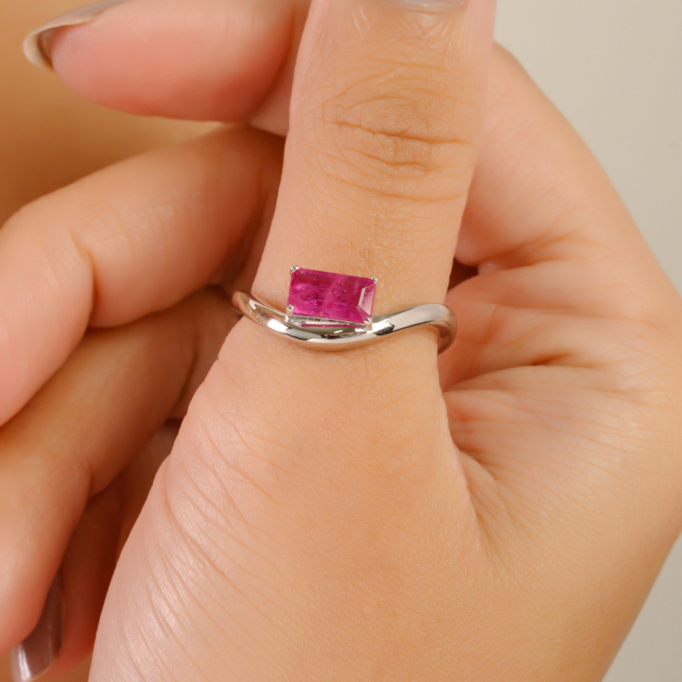 แหวนทับทิมแท้ทรงหยักหรูหราขายดี ของขวัญวันวาเลนไทน์ ทองคำขาว K14 แท้ ราคาขายส่ง เครื่องประดับคุณภาพสูง