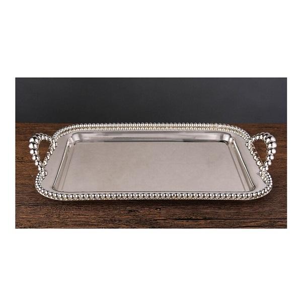 ถาดเสิร์ฟอาหารโลหะดีไซน์ขอบสุดหรูถาดเสิร์ฟของตกแต่งบ้านในโรงแรมและร้านอาหาร