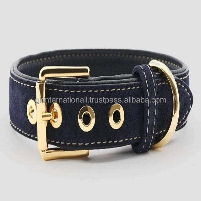 ปลอกคอสุนัขแบบพรีเมี่ยมสำหรับสัตว์เลี้ยงทำมือขอบตัดทำด้วยมือชุบทองหรูหรา