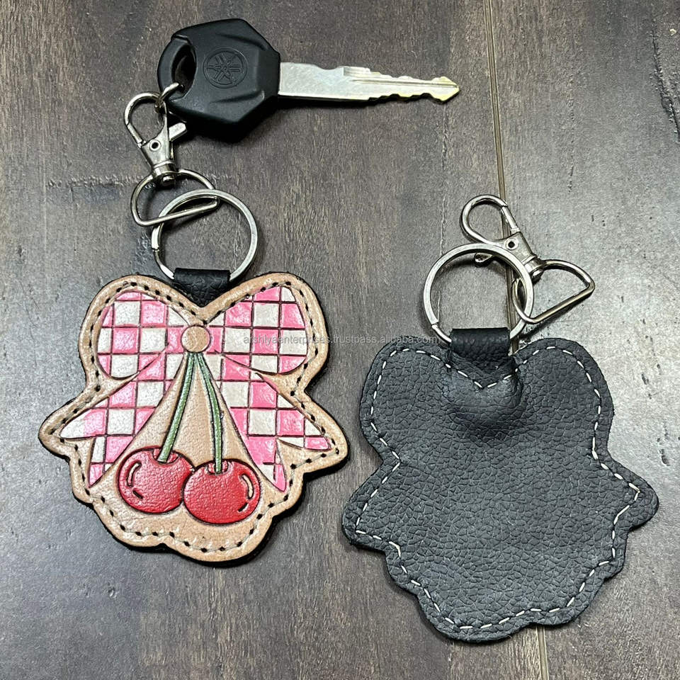 พวงกุญแจหนังแท้ลายตารางหมากรุก ดีไซน์หรูหรา งานแฮนด์เมด หนังวัวแท้ ของขวัญสุดพิเศษ ขายดี