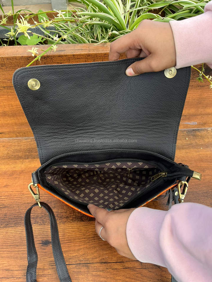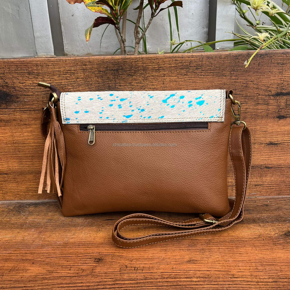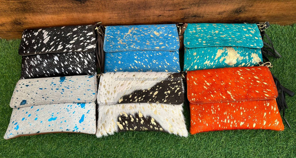 กระเป๋าสะพายพาดลำตัวหนังวัวพิมพ์ลายสัตว์สุดหรูสำหรับผู้หญิงกระเป๋าหนังแท้มีฝาปิดแบบคล้องข้อมือ