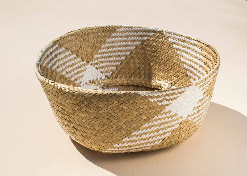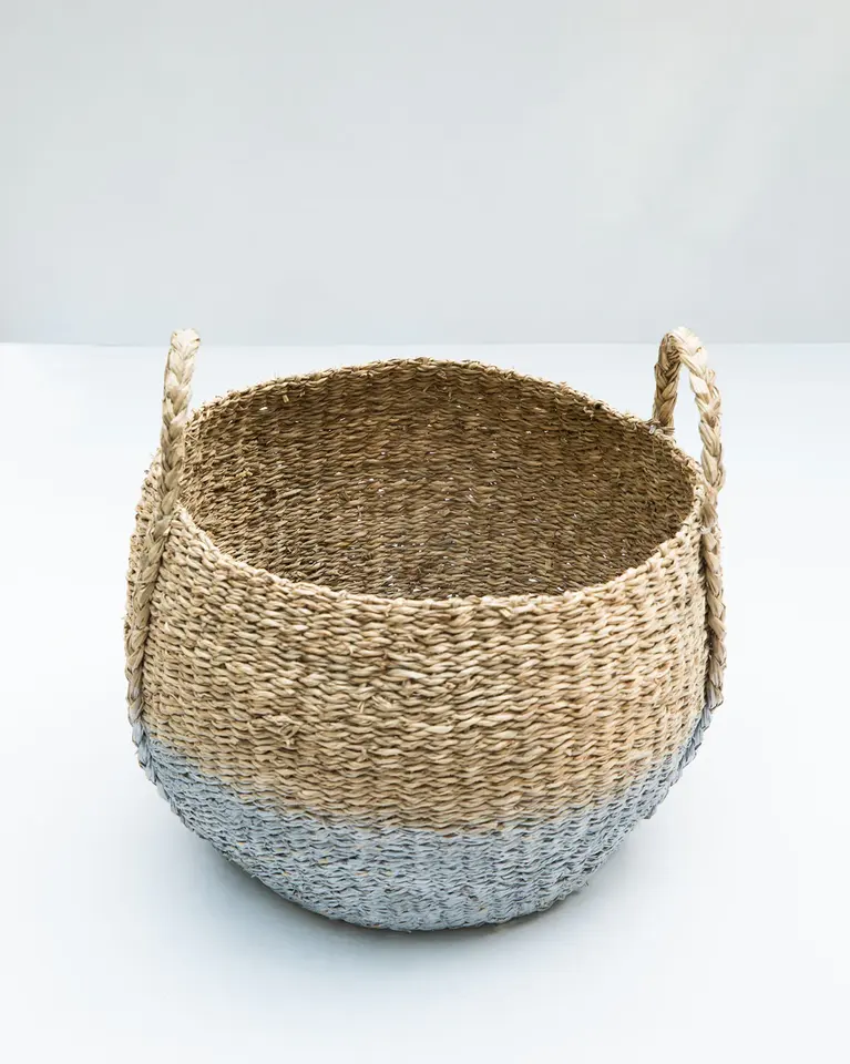 ตะกร้าหญ้าทะเลคุณภาพระดับพรีเมียมดูหรูหราที่เก็บของในห้องครัวที่บ้านหรูหราทำด้วยมือ