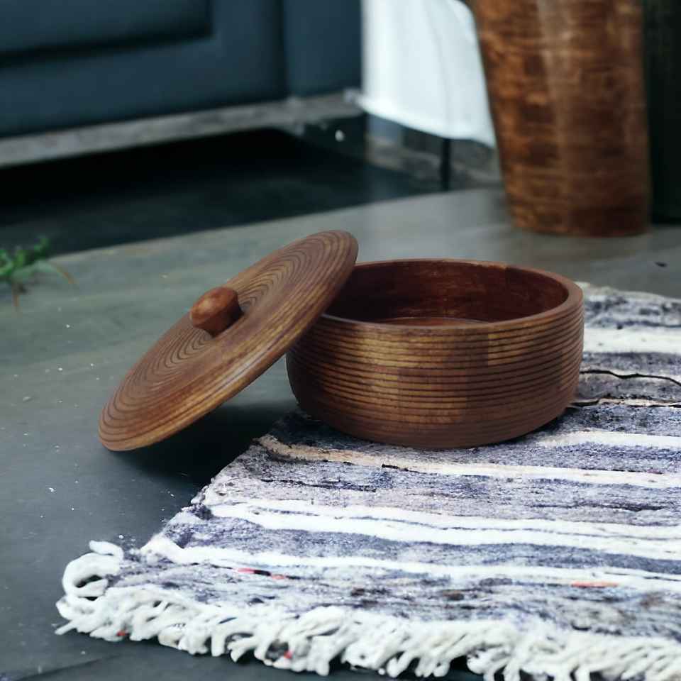 ชุดถ้วยชามสลัดผลไม้ลายมะม่วงโบราณโบราณสีน้ำตาลธรรมชาติเป็นมิตรกับสิ่งแวดล้อมพร้อมฝาปิด