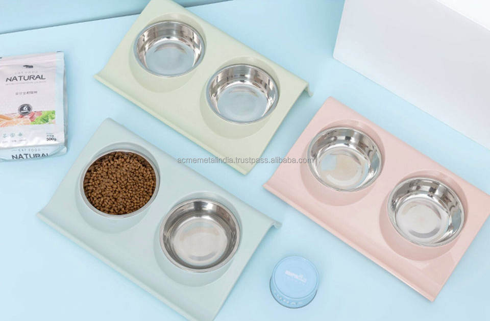 ชามสัตว์เลี้ยงสองชั้นแบบพกพาสุดหรูพิมพ์ลายได้เองทำจากโลหะสแตนเลสสีดำเคลือบสำหรับให้สุนัขกินเครื่องดื่ม