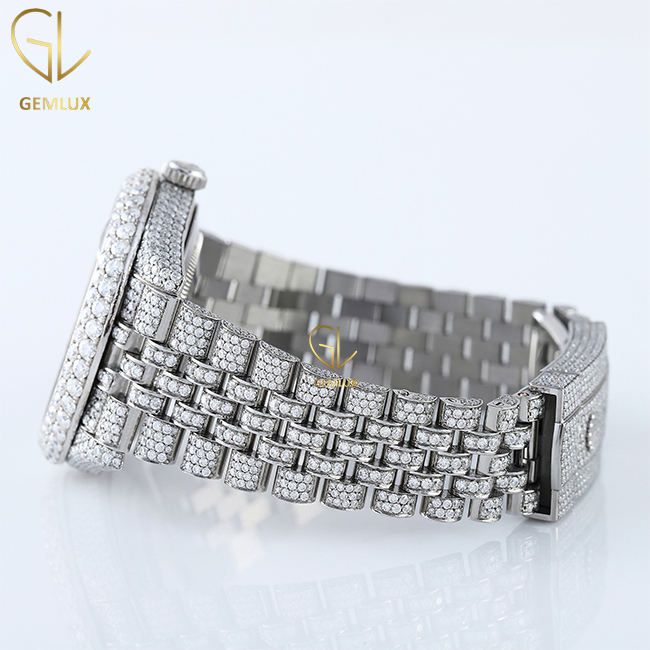 นาฬิกาฮิปฮอปสำหรับผู้ชายสายสีรุ้งสุดหรูสวมใส่ผ่านเครื่องทดสอบเพชรแบบมีสีสัน