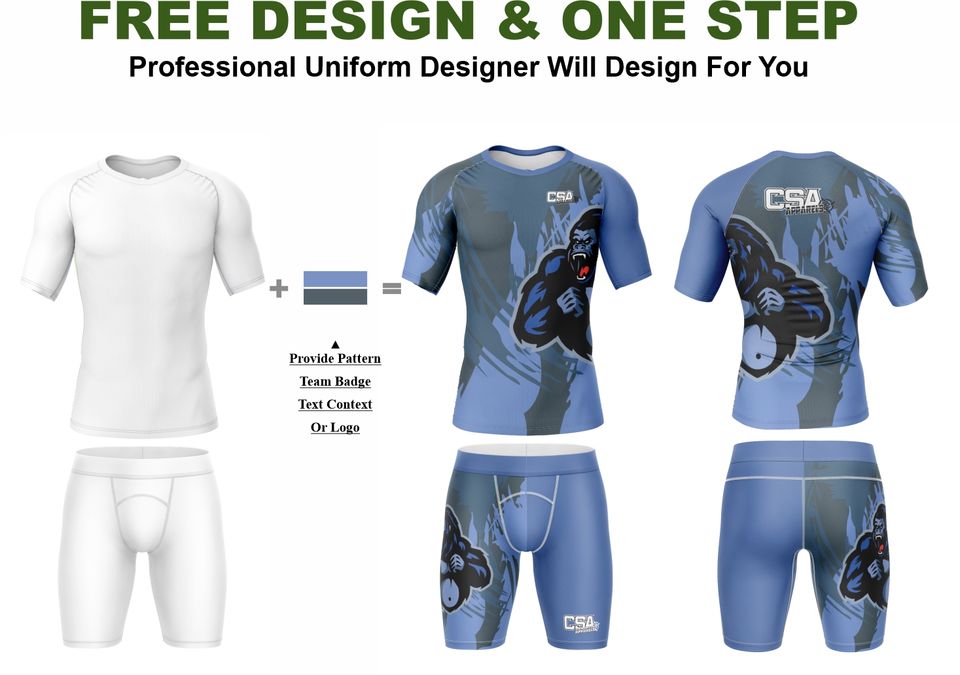 ผ้าสแปนเด็กซ์พิมพ์ลายสำหรับผู้ชายชุดรัดรูปของผู้ชายชุดวิ่ง BJJ รัชการ์ดและกางเกงขาสั้นตามสั่ง