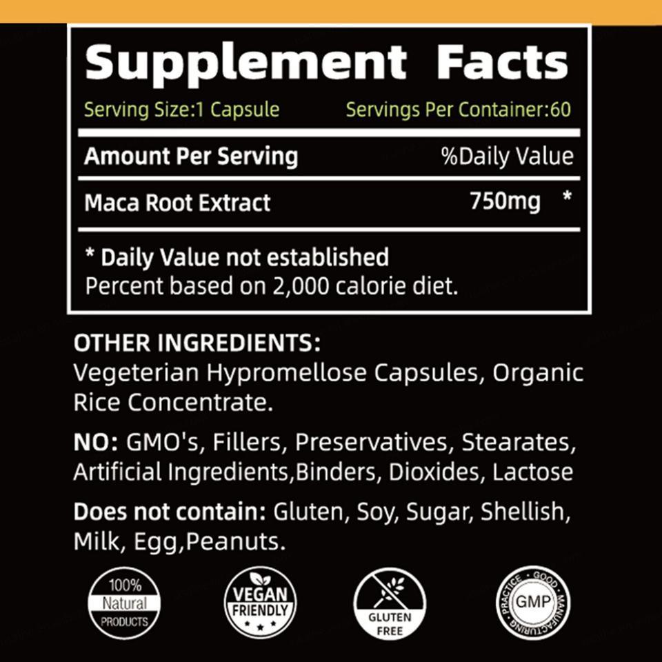 สารสกัดมาคาขายดี 750 มก. 60 แคปซูล ผงรากมาคาจากเปรู อาหารเสริมปรับสมดุลฮอร์โมน อาหารเสริมมาคา