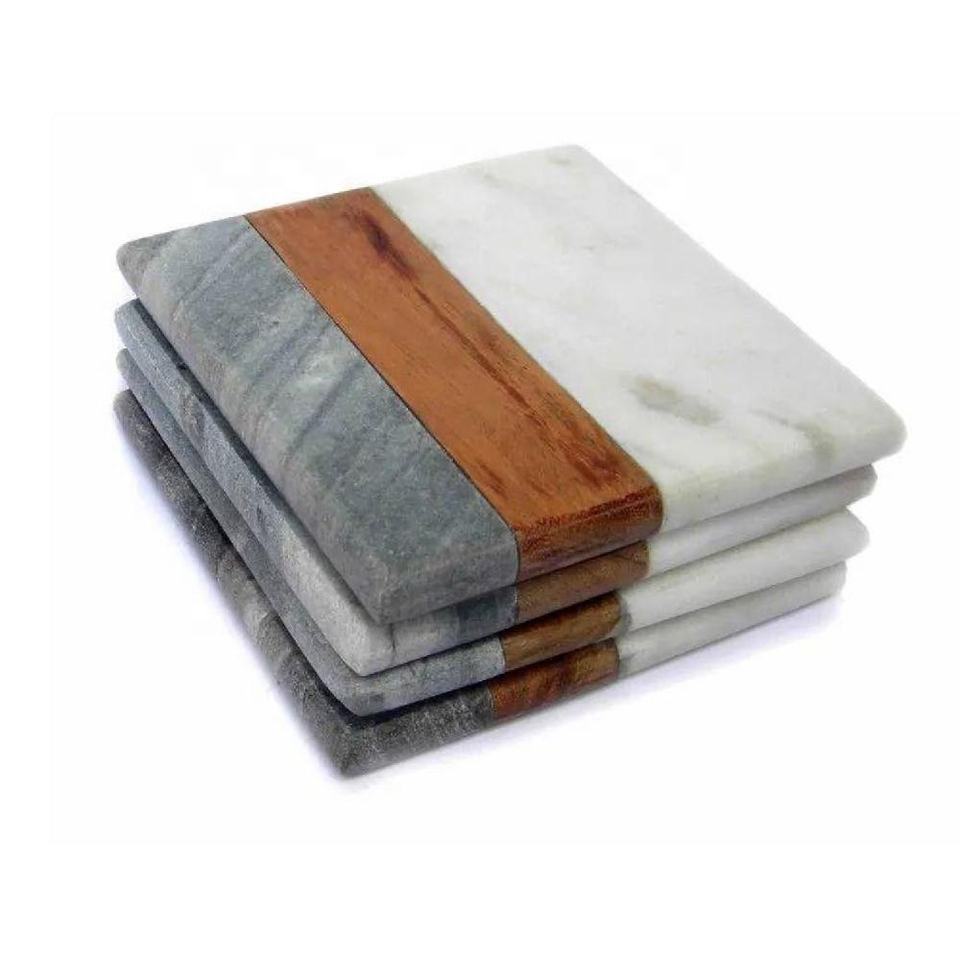 ชุดที่รองแก้วไม้หินอ่อนและหินอ่อน4ชิ้นสำหรับเครื่องดื่มกาแฟโต๊ะรับประทานอาหารถาดรองแก้วตกแต่งทันสมัยสำหรับบ้าน