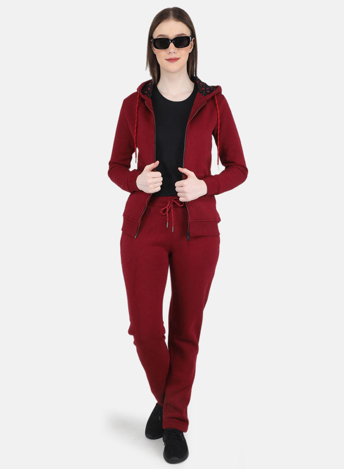 Hot Selling Maroon Women's OEM 2 Piece Tracksuit Matching Set Full Length Breathable Hoodie & Sweatpants 2 Piece Sweat Suit Set