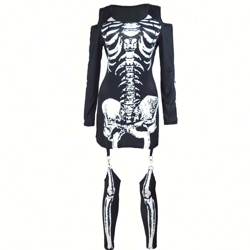ชุดฮาโลวีนเปิดไหล่เซ็กซี่งานแฟนซีชุดการแสดงสีเข้มพร้อมชุดสูท