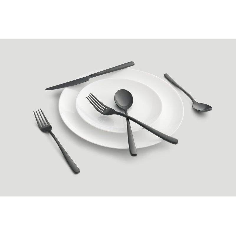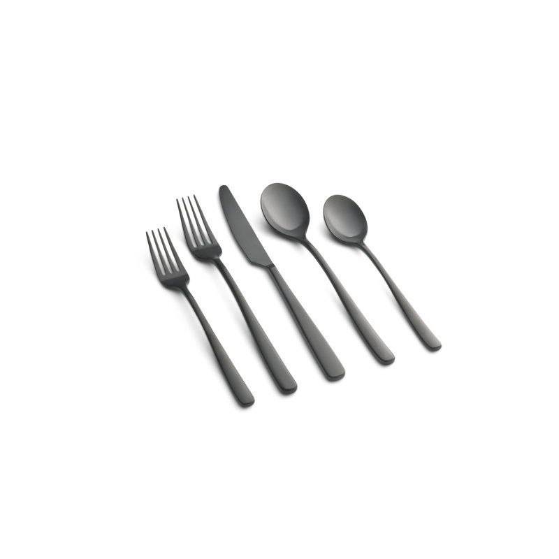 ชุดเครื่องใช้บนโต๊ะอาหารสแตนเลสเคลือบสีดำด้านสำหรับบ้านโรงแรมมิเรอร์ขัดเงาเครื่องครัวสำหรับงานปาร์ตี้