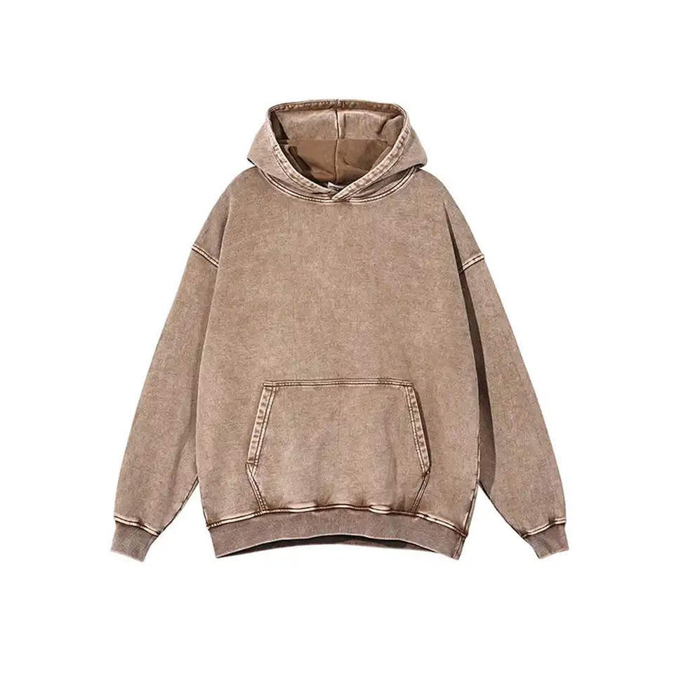 เสื้อฮู้ดดี้ผู้ชายแบบย้อมสีเอซิดขายดี / โรงงานผลิตโดยตรง เสื้อฮู้ดดี้คุณภาพสูงแบบสวมหัว ย้อมสีเอซิด พร้อมพิมพ์โลโก้ตามสั่ง OEM