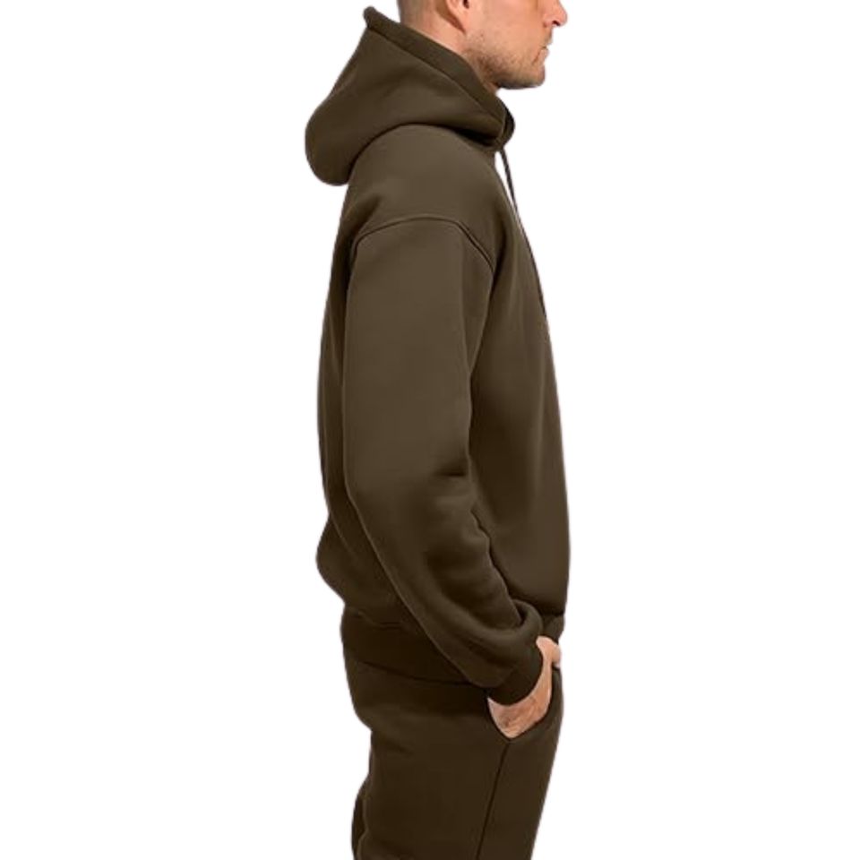 เสื้อสเวตเตอร์แบบสวมศีรษะของผู้ชายผ้าฟลีซระบายอากาศได้ดีแบบ100% ผ้าทอแบบมีฮู้ด2ชิ้นสำหรับเล่นกีฬาฤดูหนาว