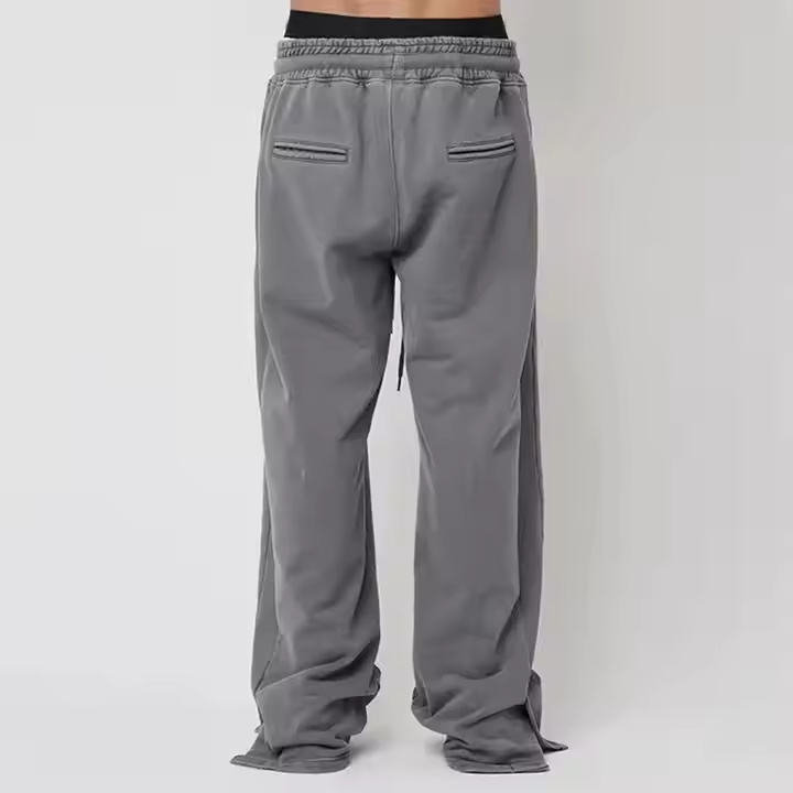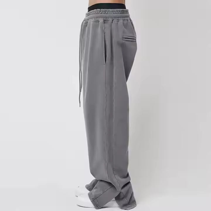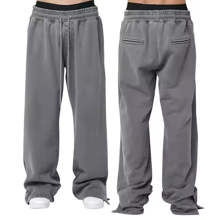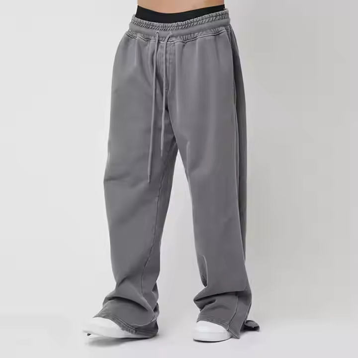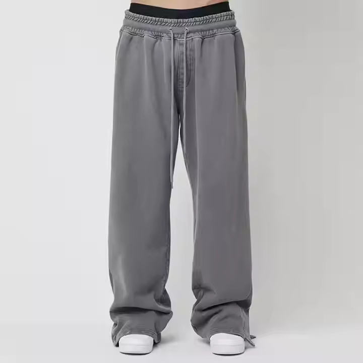 Hot Selling Men's Autumn Sweatpants Custom Logo Knitted Baggy Vintage Acid Washed Midweight Casual Design Wide Leg Mid Waist