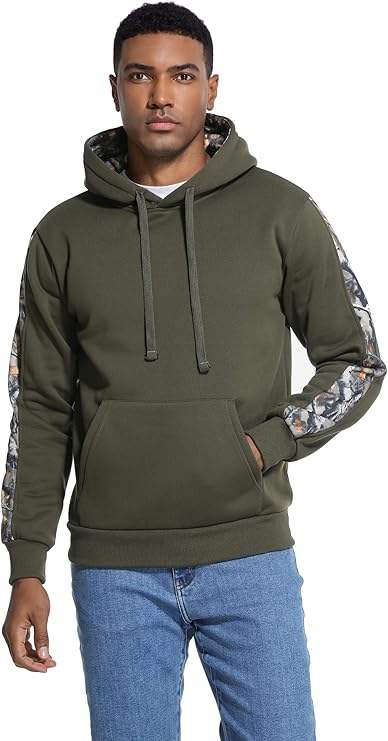 เสื้อสเวตเตอร์ลำลองแขนยาวแบบสวมหัวมีฮู้ดลายพรางมีกระเป๋าสำหรับผู้ชายชุด100% ลายพรางมีฮู้ดคอตตอนฟลีซแบบสวมหัว