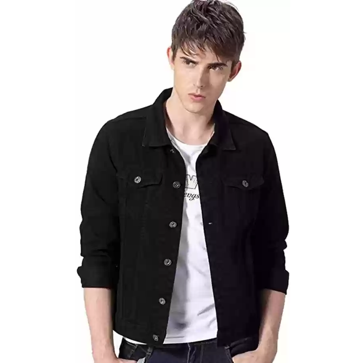 แจ็กเก็ตผ้ายีนส์สีดำลำลองสำหรับผู้ชายขายดีปกตั้งระบายอากาศได้ผ้าพิมพ์ลายพัฟทันสมัยสำหรับฤดูหนาว