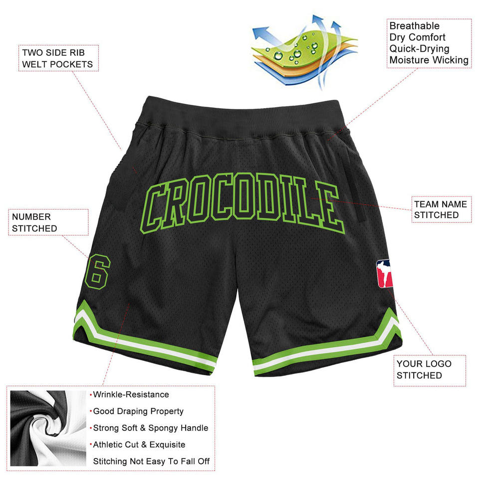 Hot Selling Men's Custom Retro Basketball Shorts Black & Neon Green with Personalized Team Name & Number Breathable Design