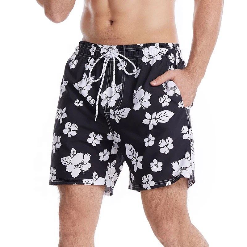 กางเกงว่ายน้ำขาสั้นพิมพ์ลายดอกไม้สำหรับผู้ชายชุดว่ายน้ำออกแบบได้ตามต้องการจากโรงงานในบังคลาเทศ