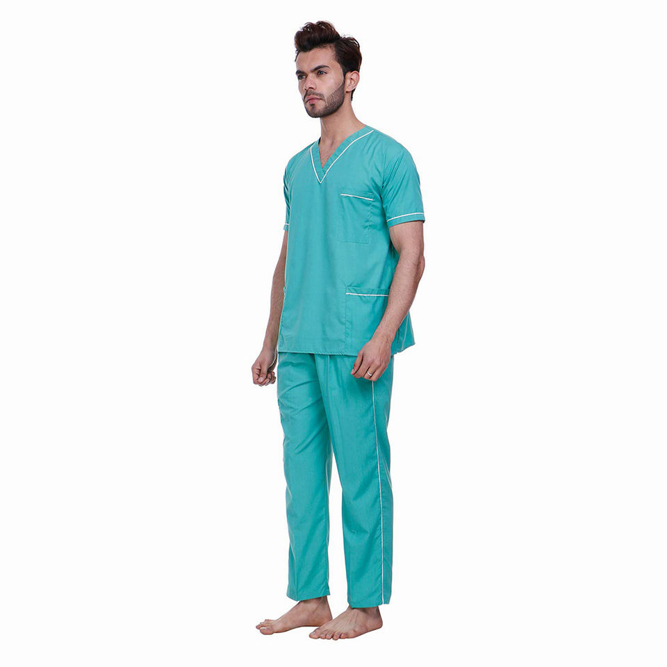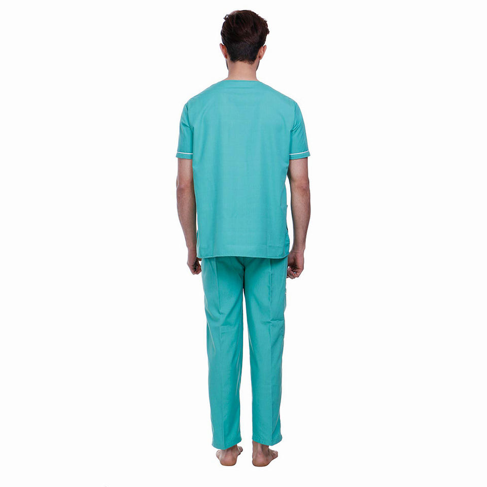 ชุดยูนิฟอร์มสำหรับหมอในโรงพยาบาลสำหรับผู้ใหญ่ชุดยูนิฟอร์มแขนสั้นผ้าคอตตอนสีฟ้าสำหรับผู้ชาย