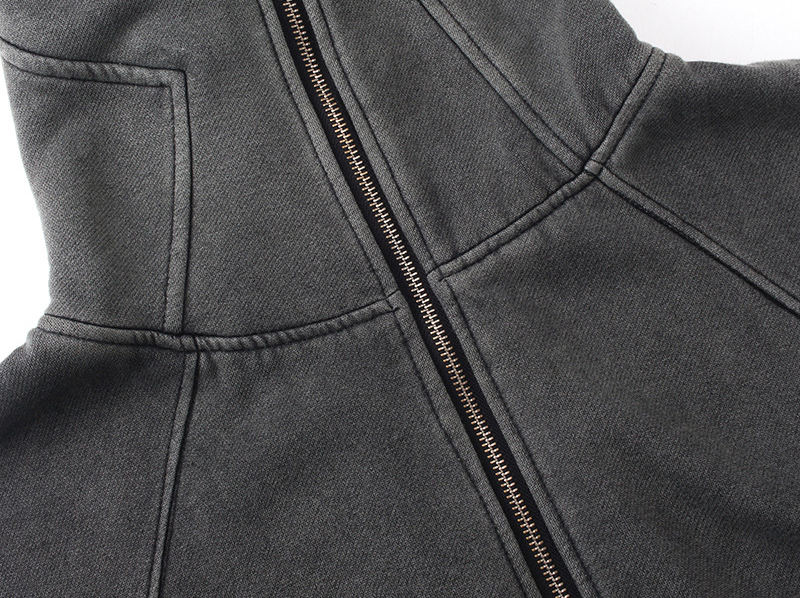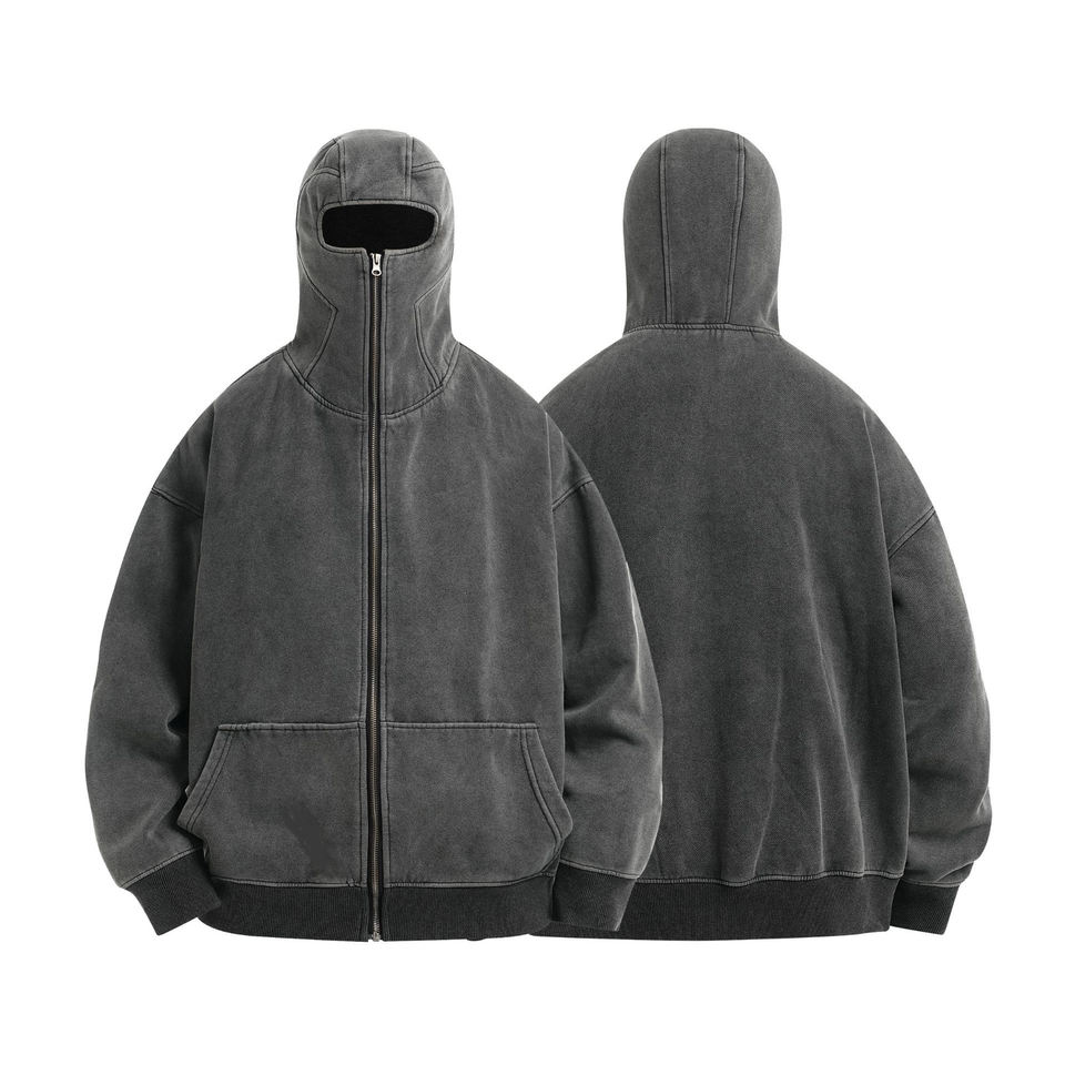 เสื้อฮู้ดดี้ผู้ชายขายดี ผ้าคอตตอนหนา แบบคลุมหน้าสไตล์นินจา ล้างสีแบบ Acid Wash ซิปเต็มตัว มีหน้ากากในตัว