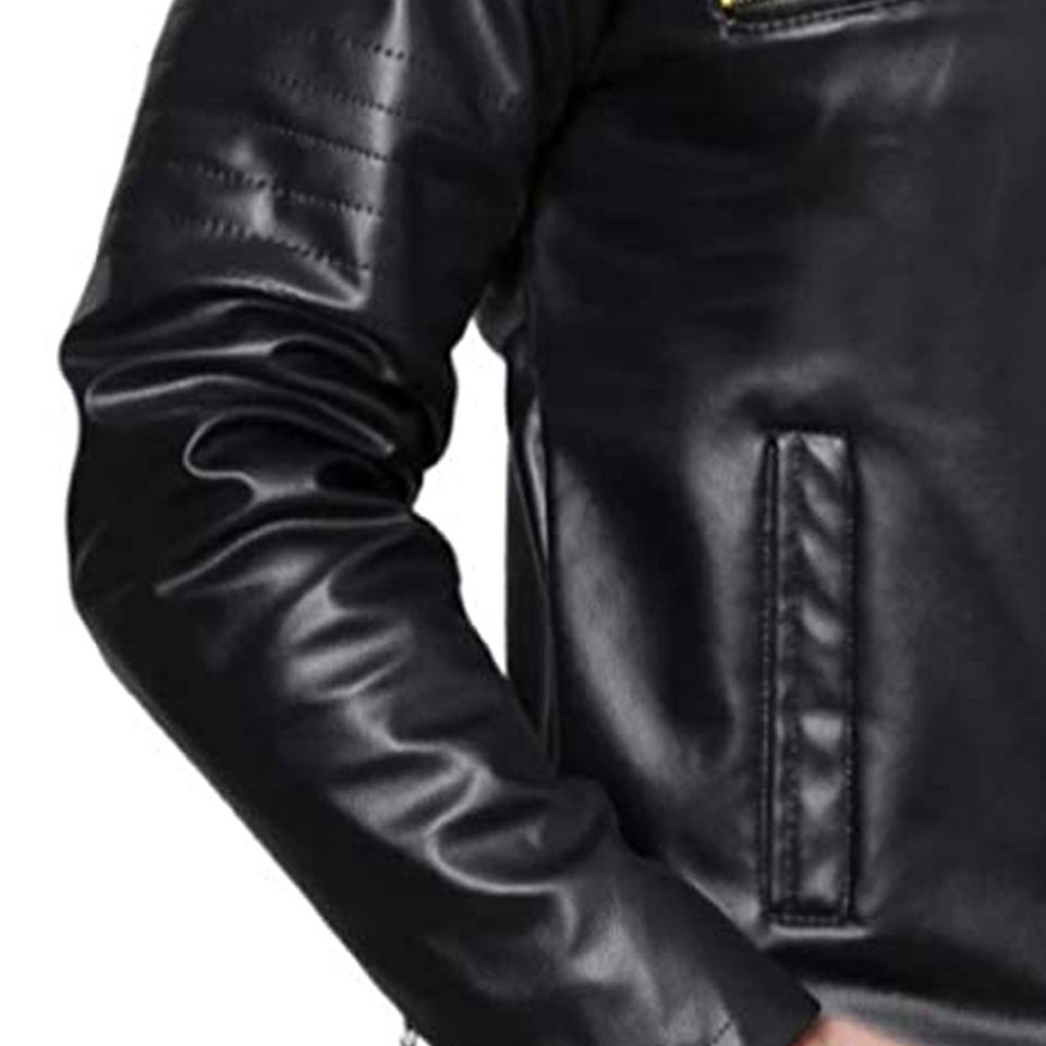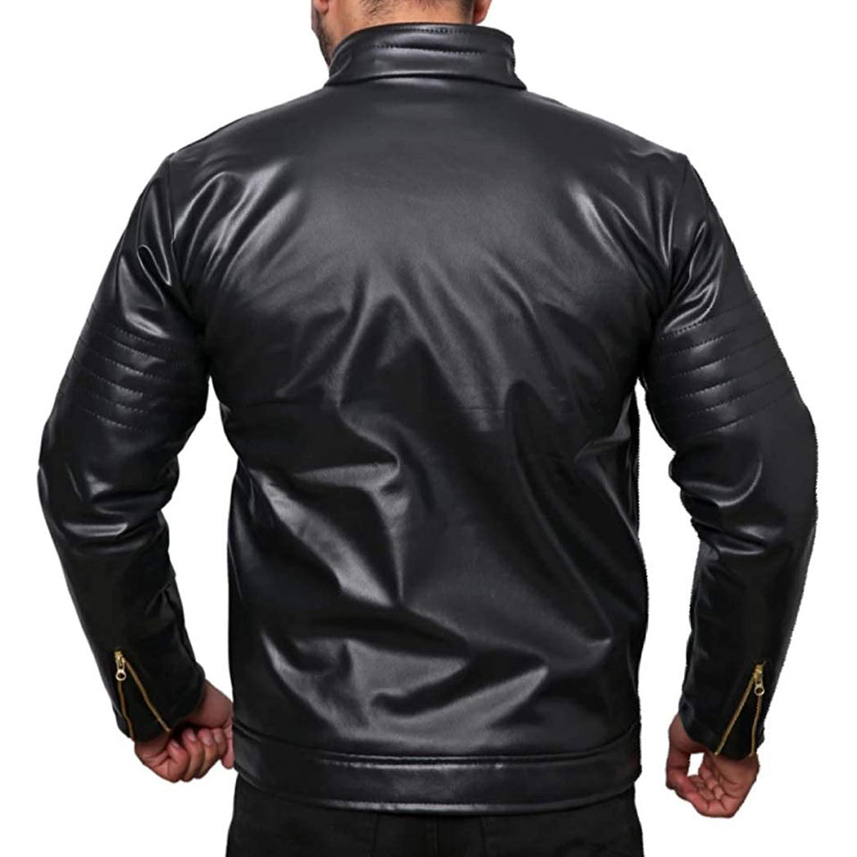 เสื้อแจ็คเก็ตหนังผู้ชายผ้าแคนวาสแบบเป็นทางการกันน้ำกันลมเสื้อคอตั้งมีโลโก้ด้านหน้าสำหรับฤดูใบไม้ผลิ