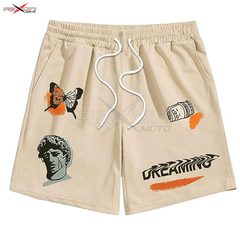 กางเกงขาสั้นมีเชือกผูกเอวพิมพ์ลายกราฟิกของผู้ชายกางเกงขาสั้นแบบแอกทีฟระบายอากาศได้พิมพ์ตัวอักษรได้ตามต้องการ