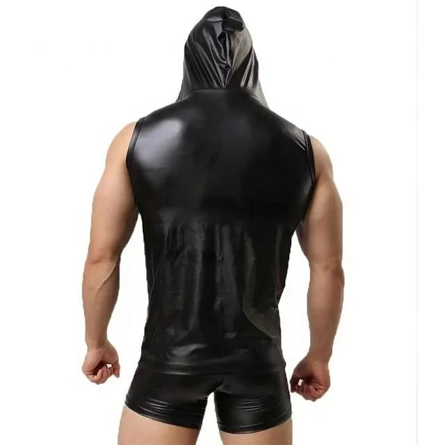 เสื้อออกกำลังกายหนังแขนสั้นสำหรับผู้ชายเสื้อออกกำลังกายแบบระบายอากาศได้ดีมีซิปปิดและมีฮู้ด