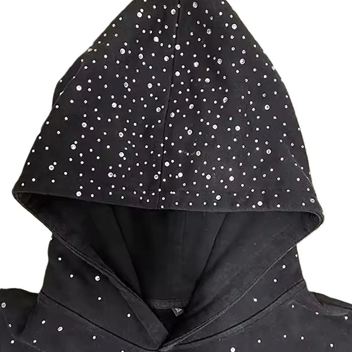 Hot Selling Men's Oversized Hoodie Sun Faded Streetwear Hip Hop Style Pullover Black Custom Rhinestone Print