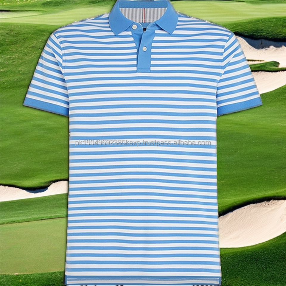 เสื้อโปโลลายทางของผู้ชายผ้าถักคอตตอนระบายอากาศดีไซน์พลัสไซส์พร้อมโลโก้ปรับแต่งได้