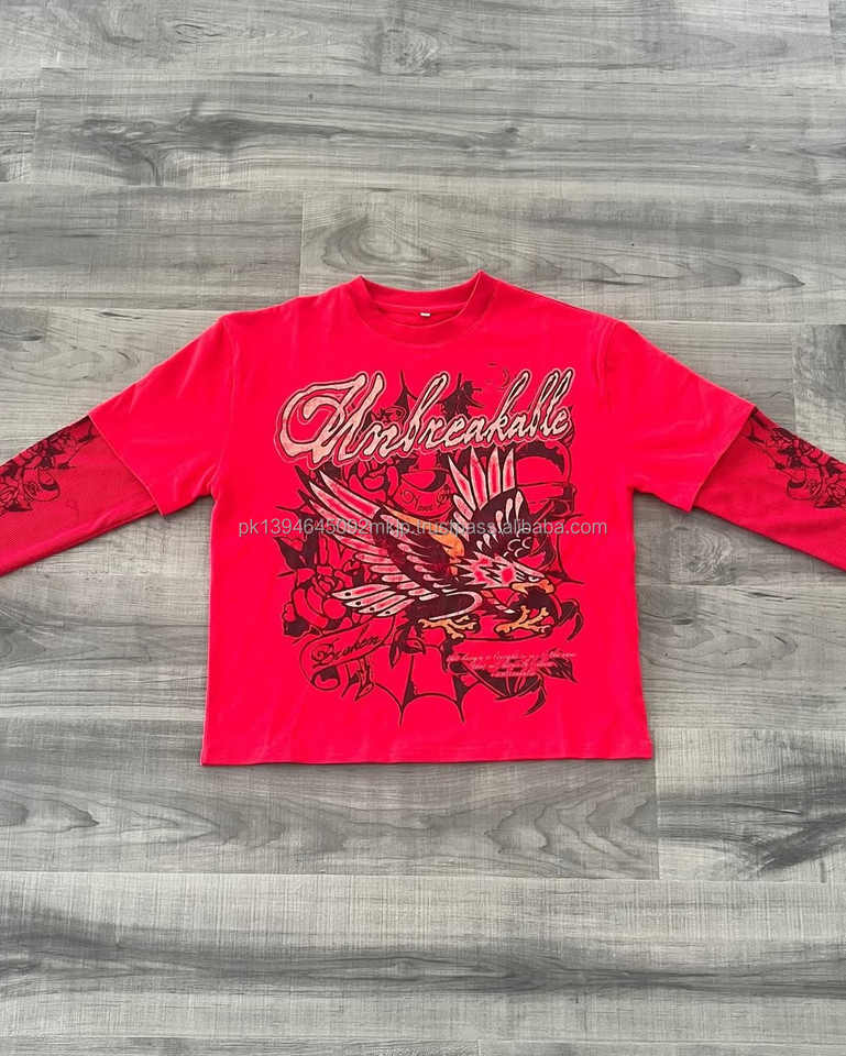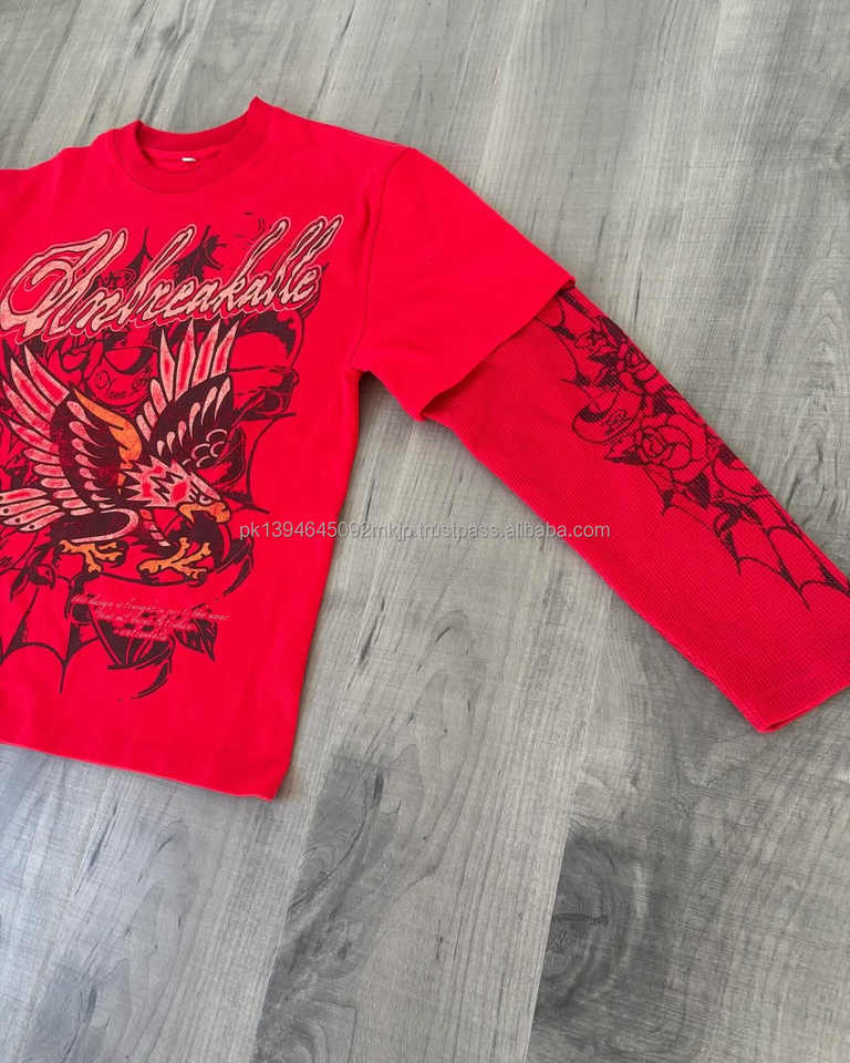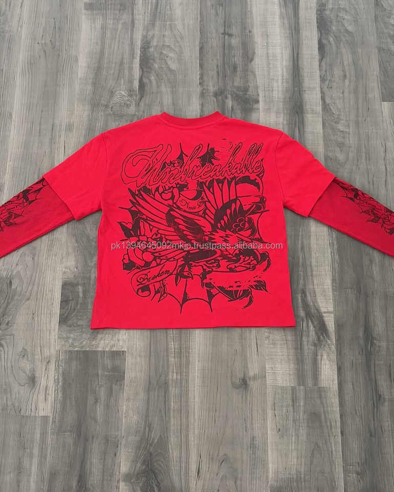 เสื้อยืดผู้ชายวินเทจแขนยาวโอเวอร์ไซส์แห้งเร็วเสื้อยืดคอกลมผ้าไมโครไฟเบอร์พิมพ์ลายสกรีนสองชั้น