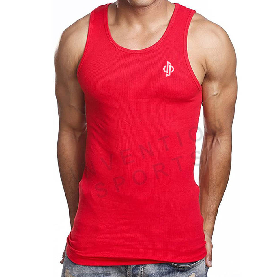 เสื้อกล้ามผ้าฝ้ายสีแดงสำหรับผู้ชายเสื้อแขนกุดธรรมดาพร้อมโลโก้ที่กำหนดเองสำหรับกีฬาลำลองในโรงยิม