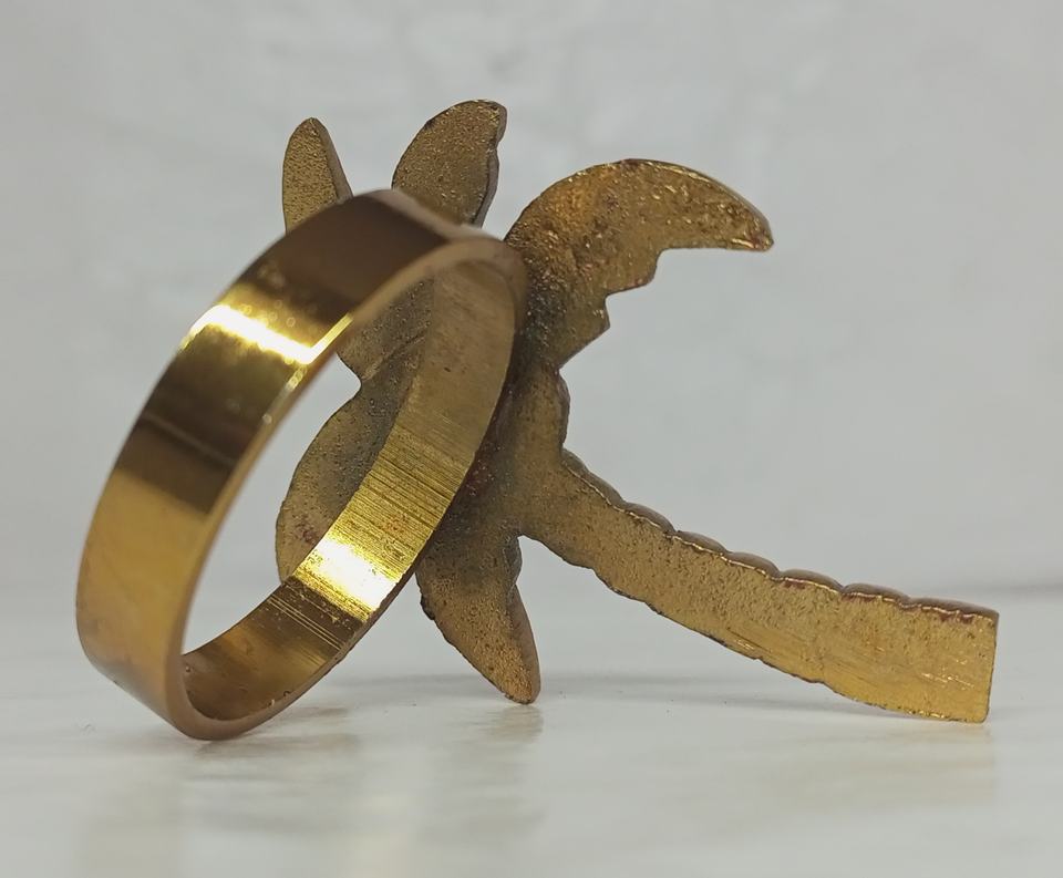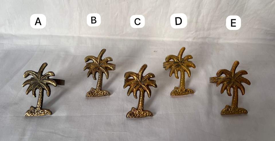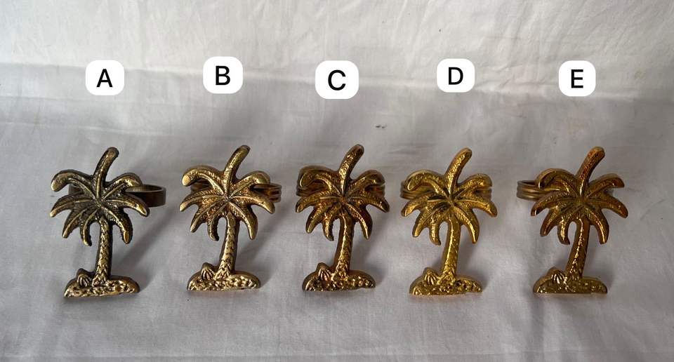 แหวนผ้าเช็ดปากรูปต้นปาล์มทำจากโลหะทองเหลืองสีทองสำหรับตกแต่งโต๊ะธีมงานปาร์ตี้งานแต่งงาน