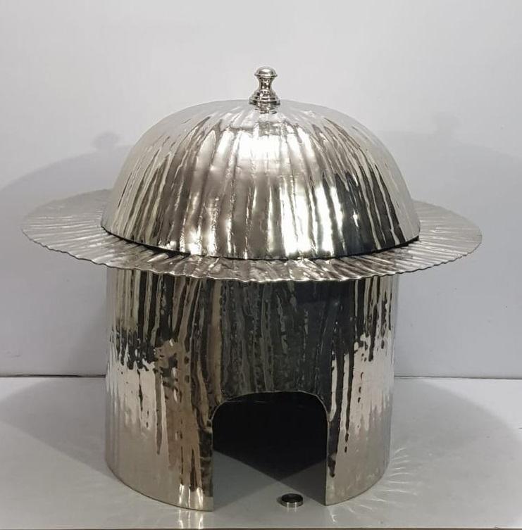 จานชุบโลหะทำจากโลหะอลูมิเนียมและเหล็กสำหรับเสิร์ฟบุฟเฟ่ต์พร้อมผิวสีเงิน