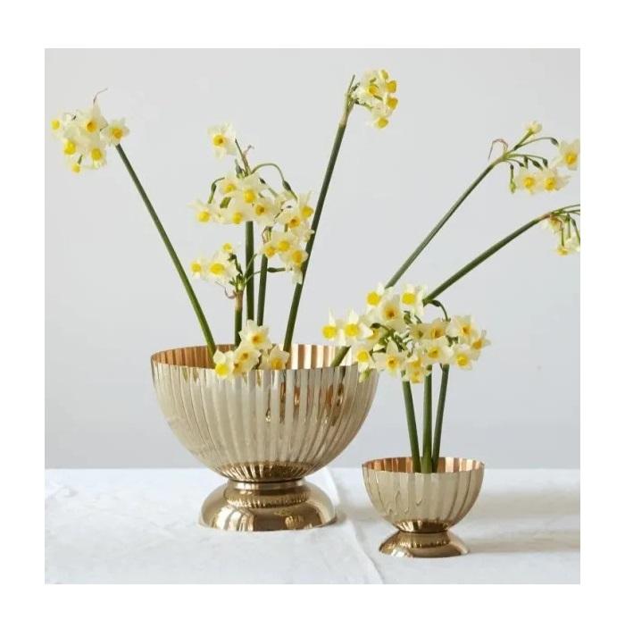 ชามดอกไม้โลหะทรงกลมสีทองสำหรับตกแต่งบ้านและสำนักงานชามดอกไม้แฮนด์เมด