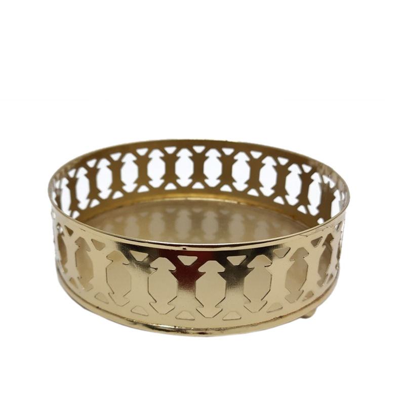 ถาดเสิร์ฟอาหารโลหะทรงกลมสีทองสำหรับโรงแรมและร้านอาหารถาดเสิร์ฟอาหารแบบทำมือ