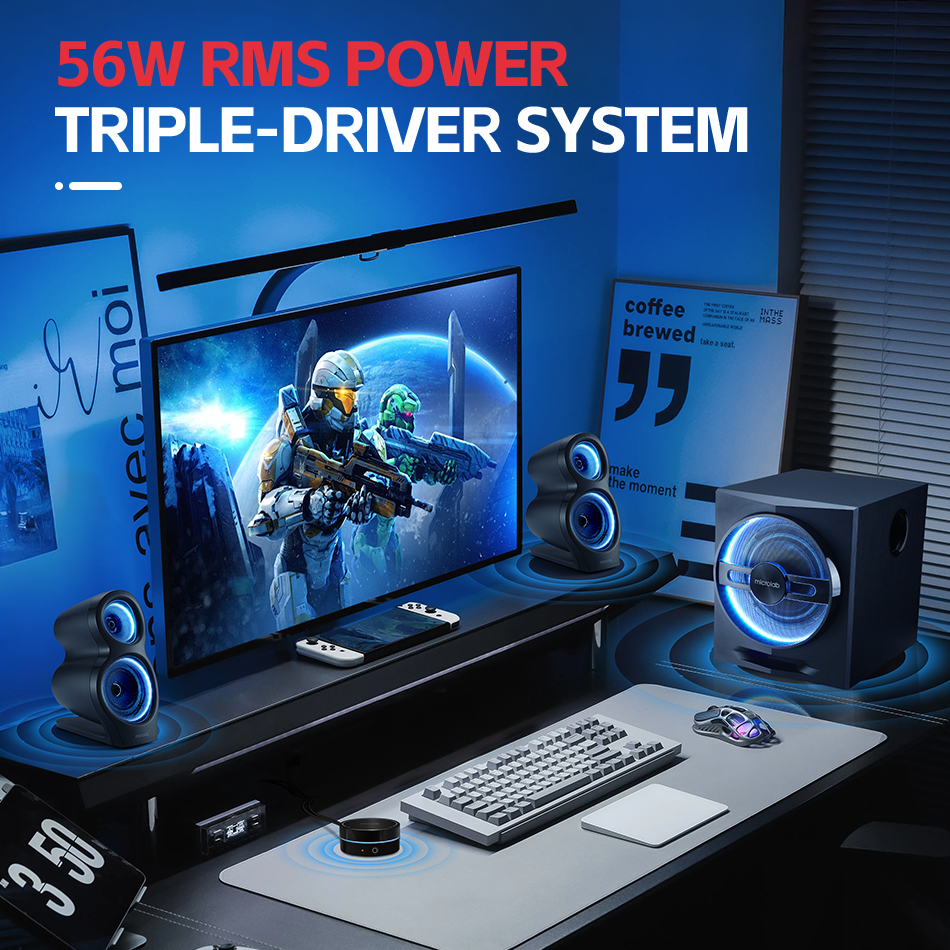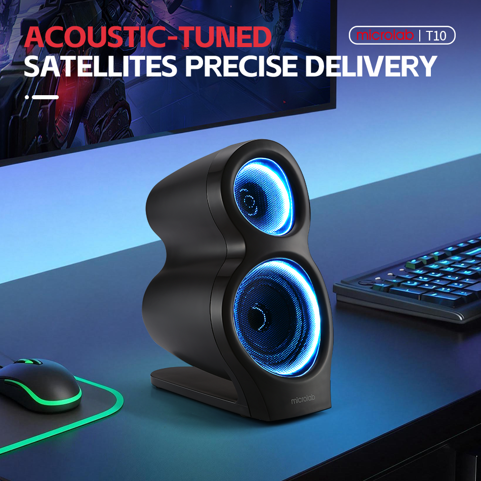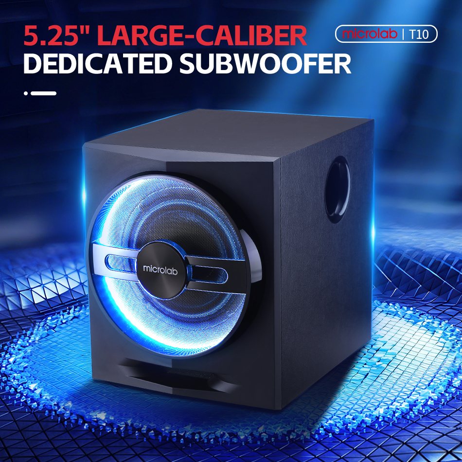 ลำโพงเกมมิ่ง Microlab T10 2.1 แชนแนล กำลังขับ 56 วัตต์ พร้อมไฟ RGB LED 5.3 นิ้ว และซับวูฟเฟอร์ 5.25 นิ้ว สำหรับคอมพิวเตอร์มัลติมีเดีย ขายดี