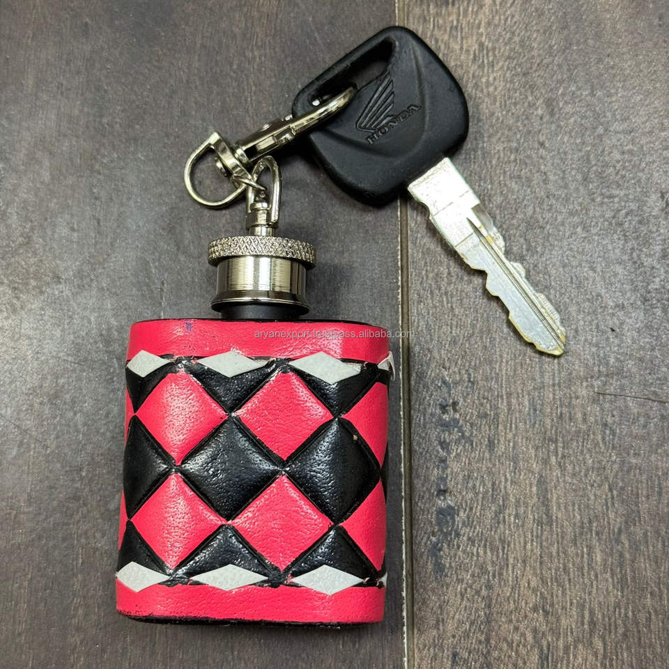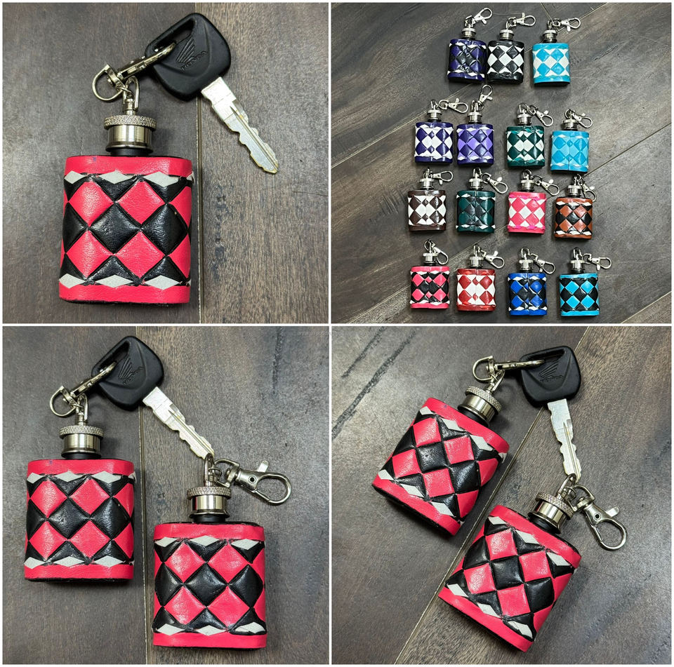 Product Name:Hand Tooled Checkered Leather Hip Flask With Keyring