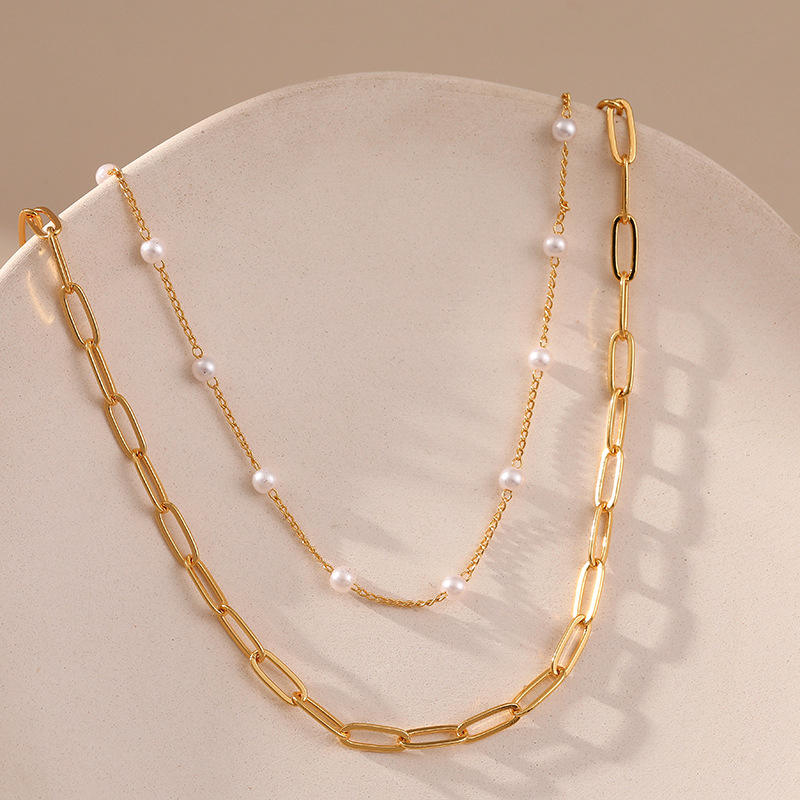 สร้อยคอไข่มุก 26 ตัวอักษร ดีไซน์มินิมอล ขายดี สร้อยคอแฟชั่นแบบเลเยอร์ จี้สวยหรู ติดกระดูกไหปลาร้า