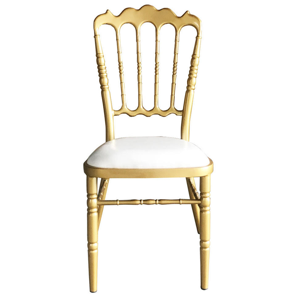 นโปเลียนสีทองแบบมินิมอลเก้าอี้พลาสติกใสสำหรับงานแต่งงานงานโรงแรม