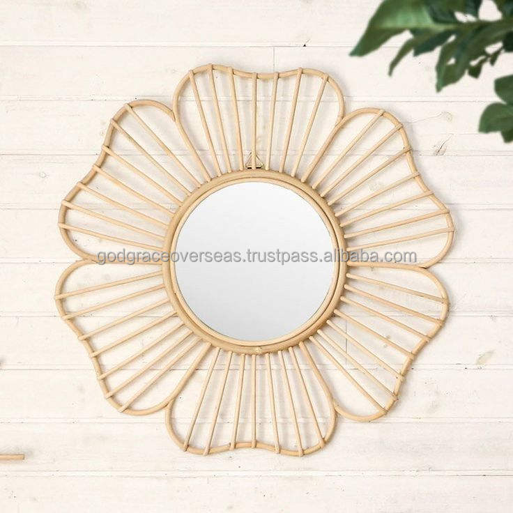 กระจกติดผนังหวายสไตล์โบฮีเมียนสไตล์นกยูงสไตล์โมเดิร์นขายดีทำจากหวายโบฮีเมียนตกแต่งบ้านสำหรับการตกแต่งภายในที่ทันสมัย