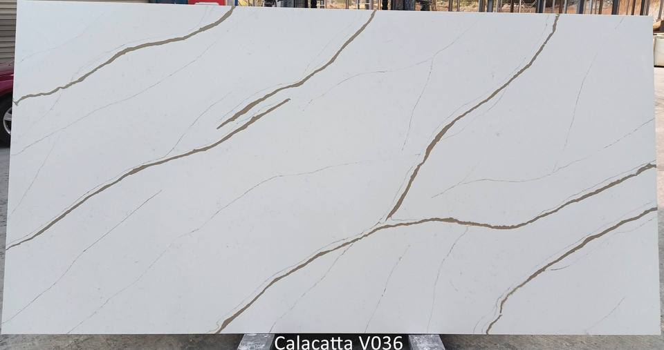 Hot Selling Modern Calacatta Quartz Artificial Quartz Eco-Friendly White Gold Stripes Slabs Countertops Vanity Tops Table Tops