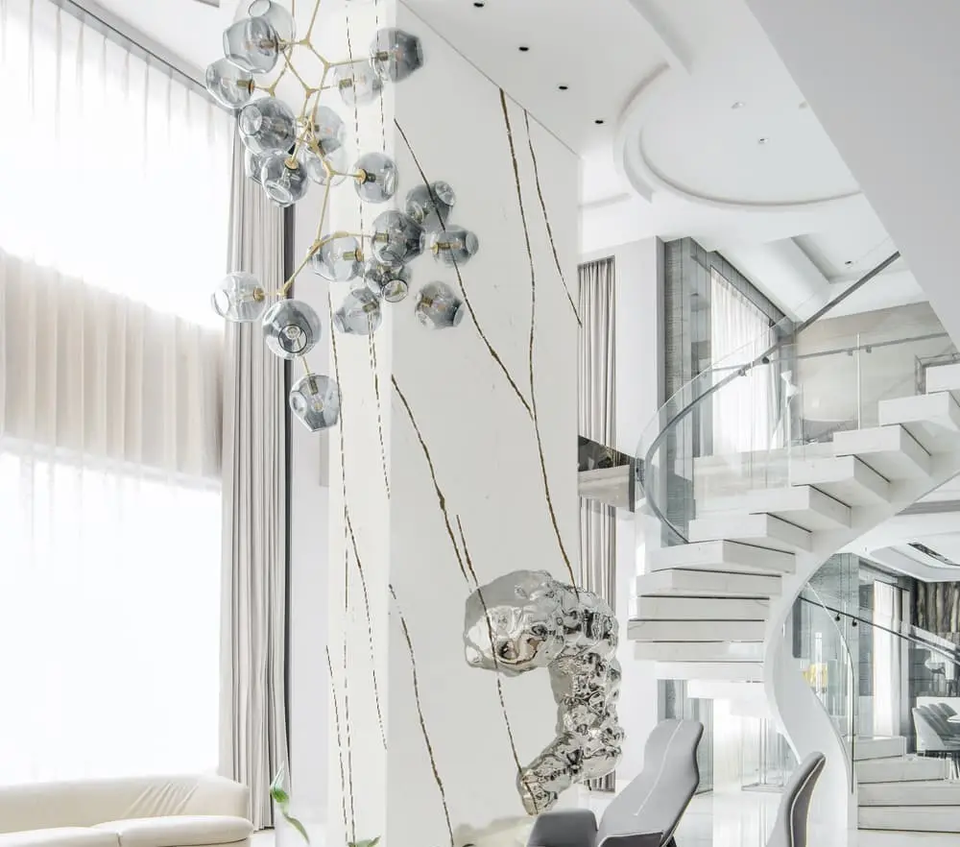 ABS ตกแต่ง125 3289W กระเบื้องหินอ่อนแสงที่ทันสมัยแผ่น quartzite ธรรมชาติสำหรับห้องนอนห้องนั่งเล่นพื้น honed Surface สำหรับวิลล่า
