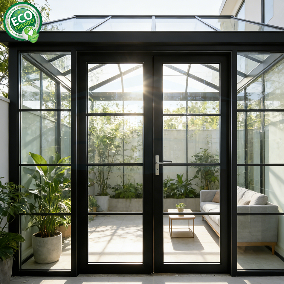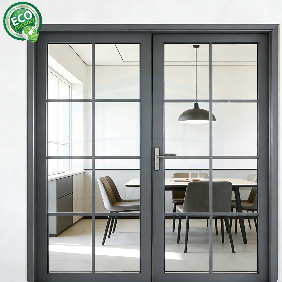 ประตูบานเปิดแบบกระจก ดีไซน์ทันสมัย หรูหรา แบบประตูคู่ไม่เท่ากัน กันน้ำ ขายดี