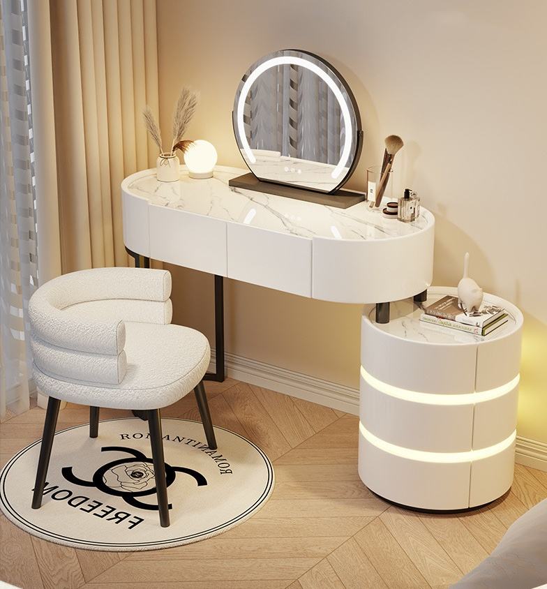 โต๊ะเครื่องแป้งทันสมัยขายดีสำหรับห้องนอน โต๊ะแต่งหน้าเรียบง่ายพร้อมกระจก LED เฟอร์นิเจอร์วานิตี้เคลือบ UV จากผู้ผลิตชั้นนำ