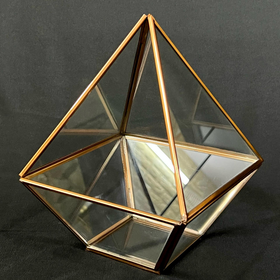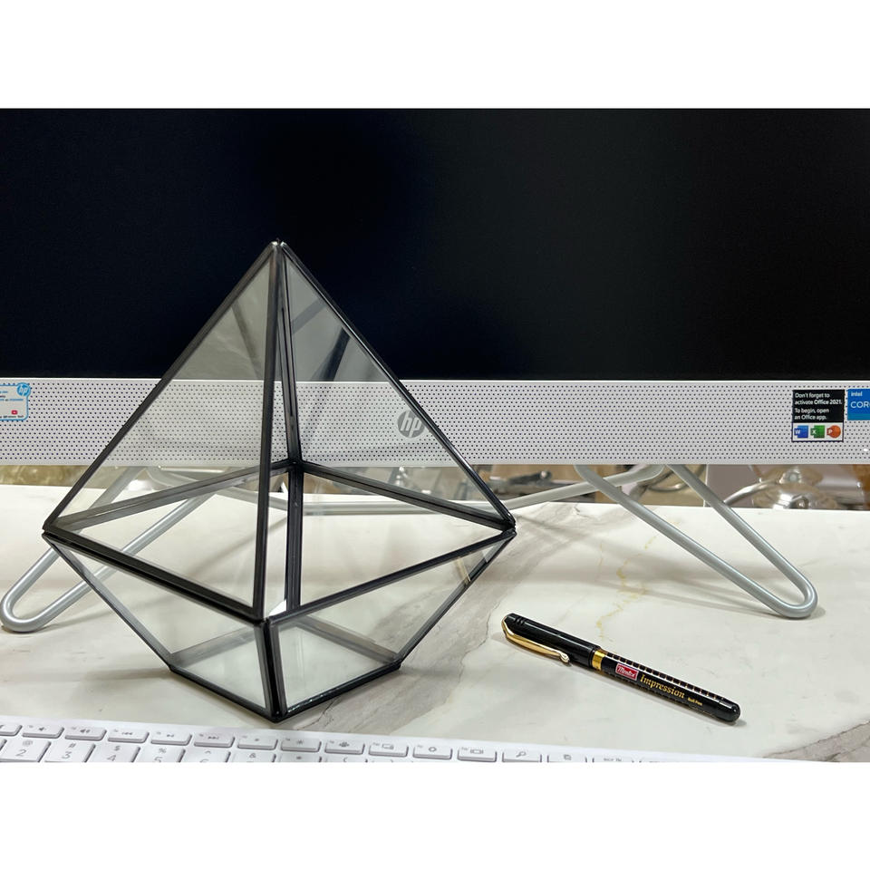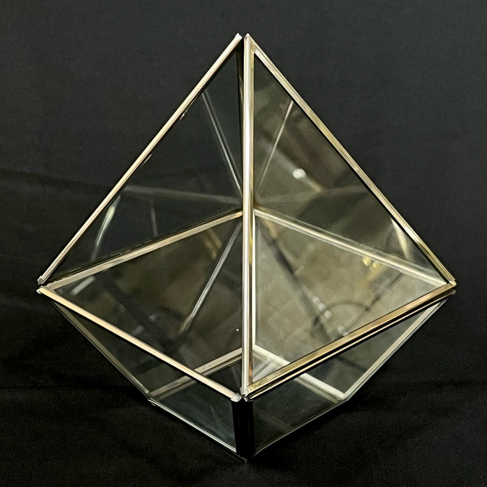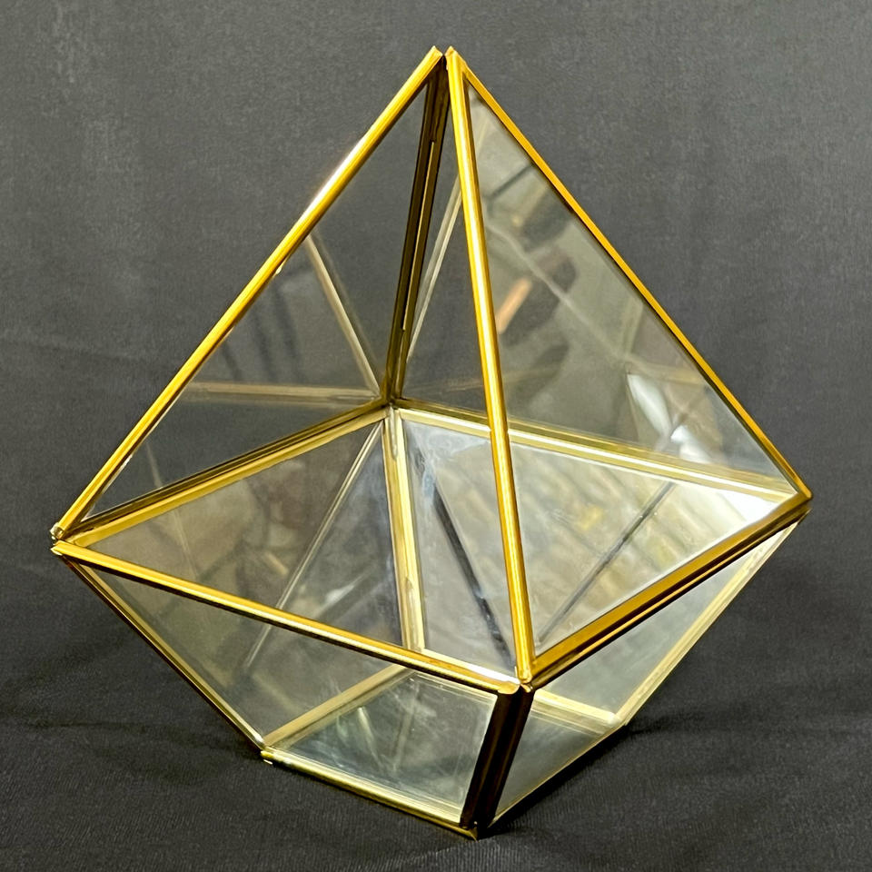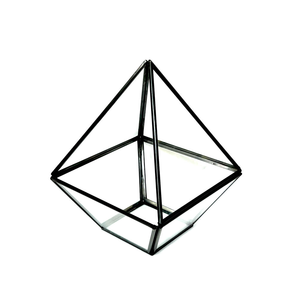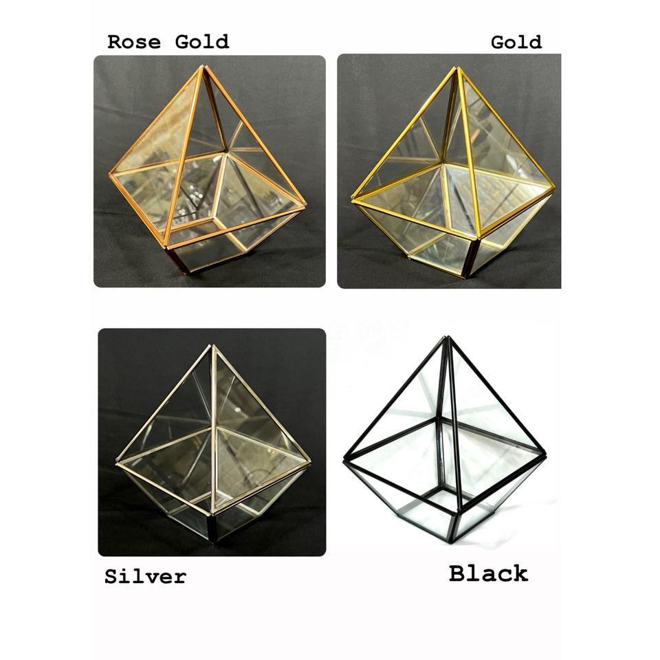 ขวดแก้วทรงปิรามิดดีไซน์ทันสมัยทำจากโลหะรูปทรงเรขาคณิตและแก้วสำหรับพืชและดอกไม้สำหรับงานแต่งงาน