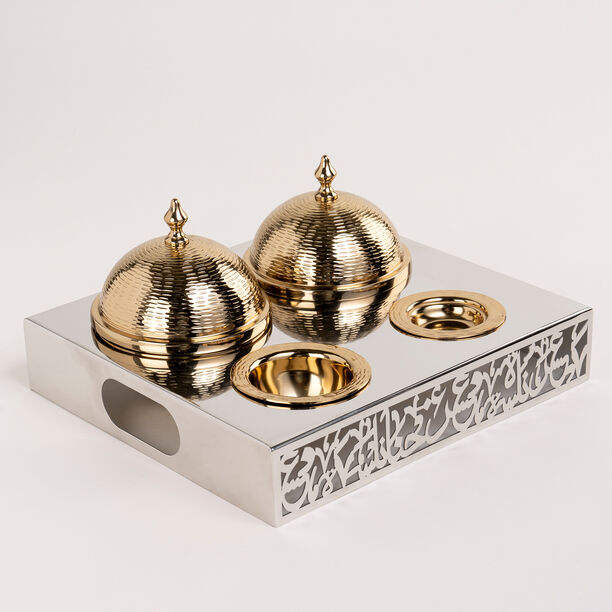 ชามสเตนเลสเคลือบสีทองและสีเงินเคลือบอินเดียทันสมัย
