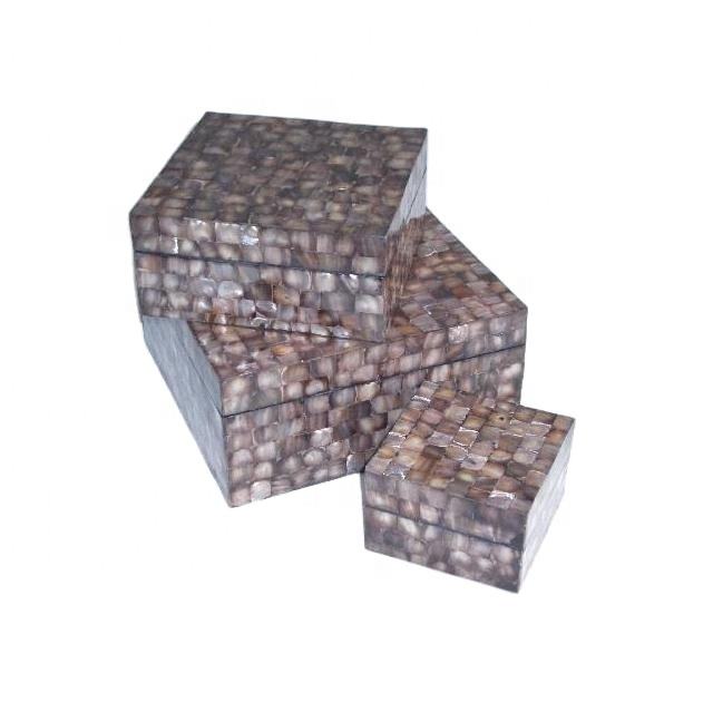 Hot Selling Modern Mother Pearl Inlay Mosaic Handmade Square Geometric Pattern Jewelry Box Organizer Available All Sizes for