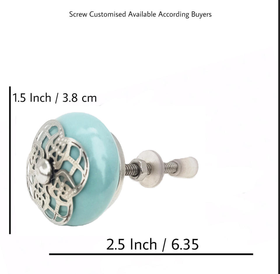 Hot Selling Industrial Moroccan Silver Filigree Aqua Ceramic Knobs Elegant Drawer Cabinet Handle Pulls for Bedroom Kitchen