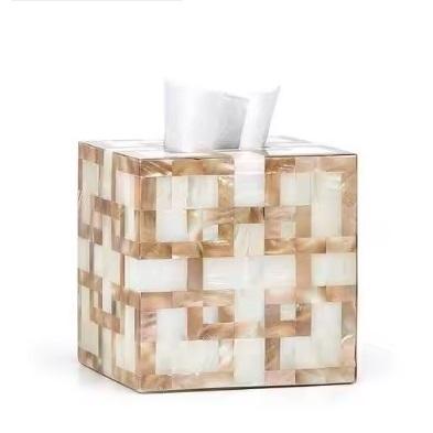 Hot Selling Mother Pearl Modern Design Tissue Holder High Use Decorative Table Top Tissue Boxes Customized Logo Packing