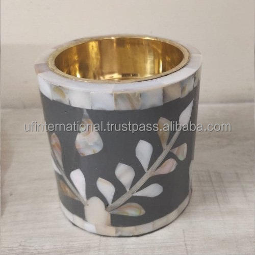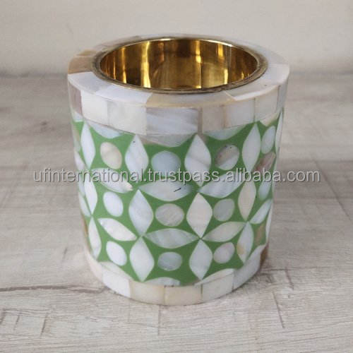 เชิงเทียนลายดอกไม้ฝังมุกสำหรับตกแต่งบ้านที่วางเทียนบนโต๊ะไฟชา